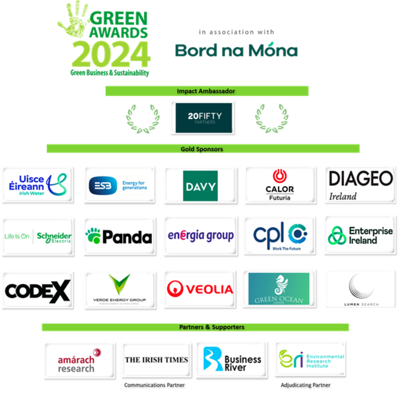 We also want to express our deep appreciation to Amárach Research and The Irish Times for their unwavering support and commitment to promoting sustainability and environmental awareness. These collaborations not only enhance the impact of the Green Awards but also help to foster a community of like-minded organisations striving towards a greener future for Ireland and beyond.