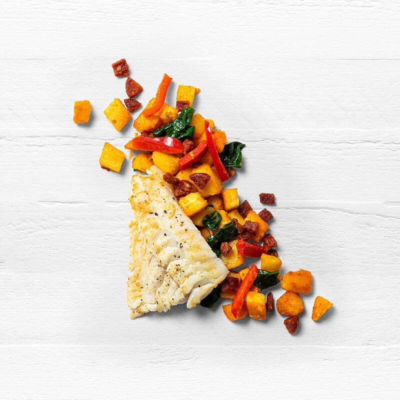 - Divide the potato and chorizo mixture between your plates, top with the cod and serve.