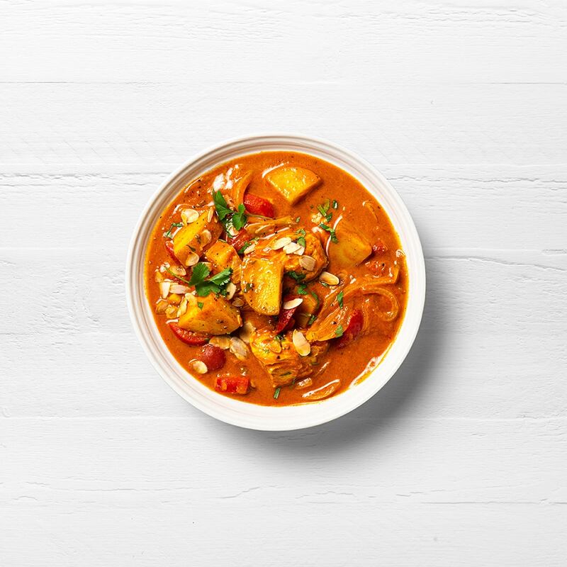 - Serve with chopped coriander, flaked almonds and lime wedges.