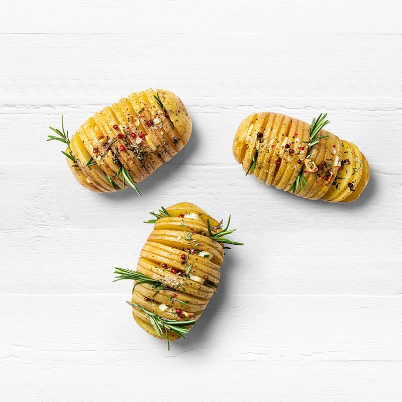 Scandinavian-style Hasselback potatoes with garlic and rosemary