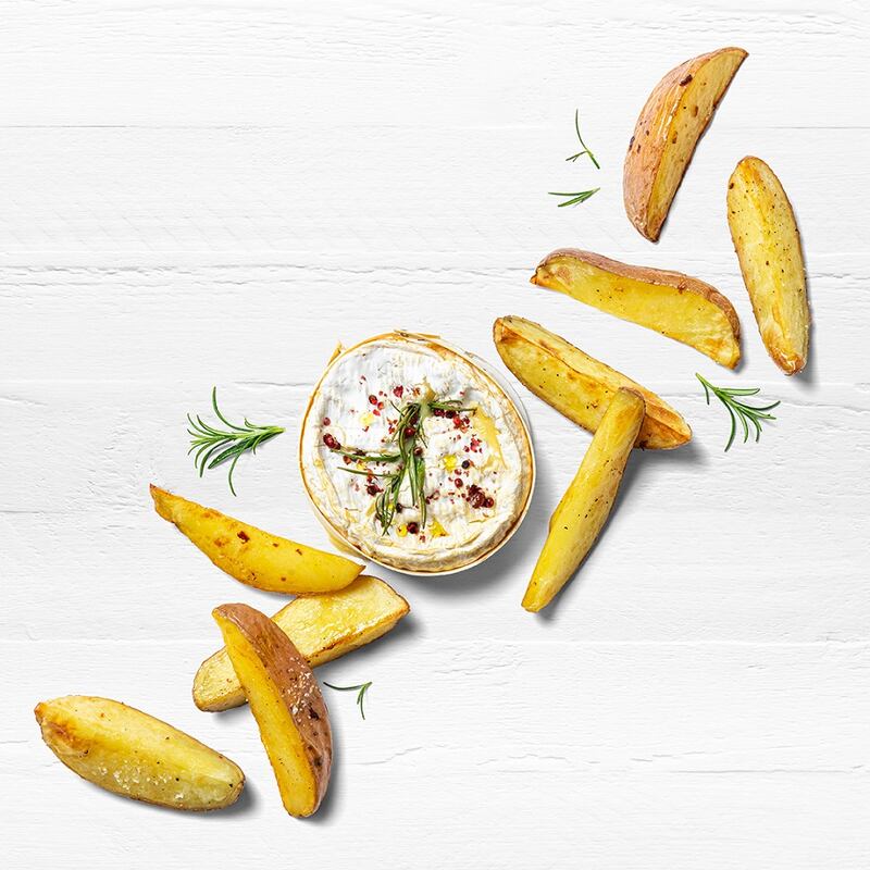 - Remove the cheese from the oven and serve immediately with the roasted potato wedges.