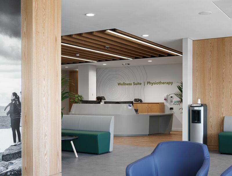 The Vhi 360 Health Centre at Carrickmines has been custom designed to support this 360 approach, with multiple collaborative spaces where care teams can meet and plan individual health programmes. Natural light is prioritised while noise has been reduced in order to create calm, bright and quiet spaces. Public areas are largely digital free with seamless technology solutions such as MRI machines with added features to reduce stress and anxiety.