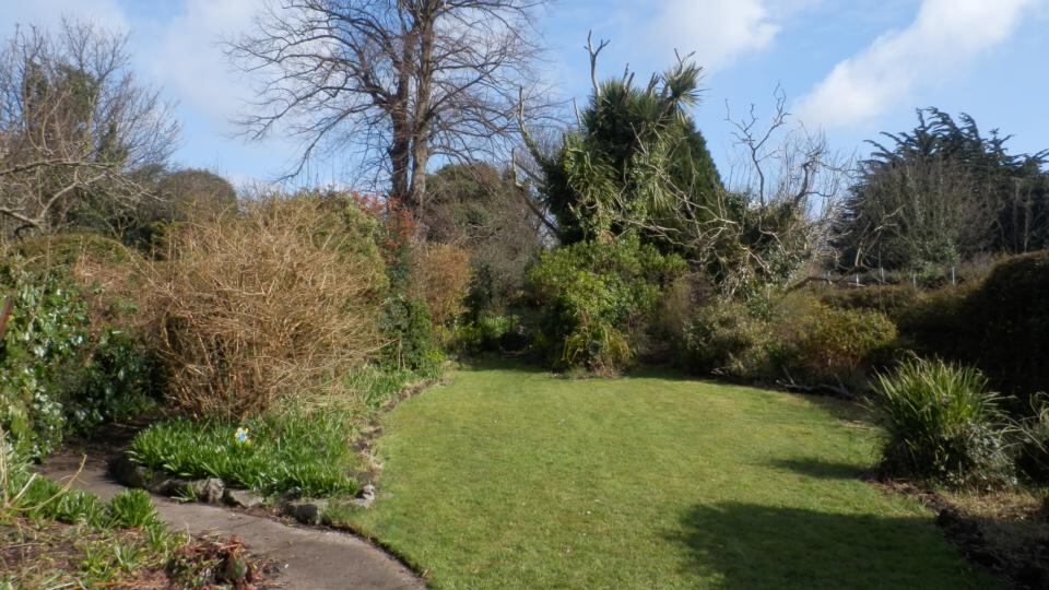 The rear dining room has French doors to a 67m (220ft) garden. From here you can’t see the full sweep of the long bluebell covered garden because some trees and foliage need to be cut back between the middle and the bottom of the garden (which backs onto the Dart line).