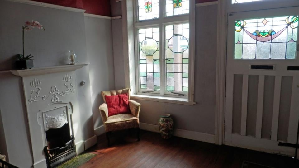 The top panes of the bay window in the living room are of stained glass and hopefully any future owner replacing the old windows – which is probably inevitable – will retain this.