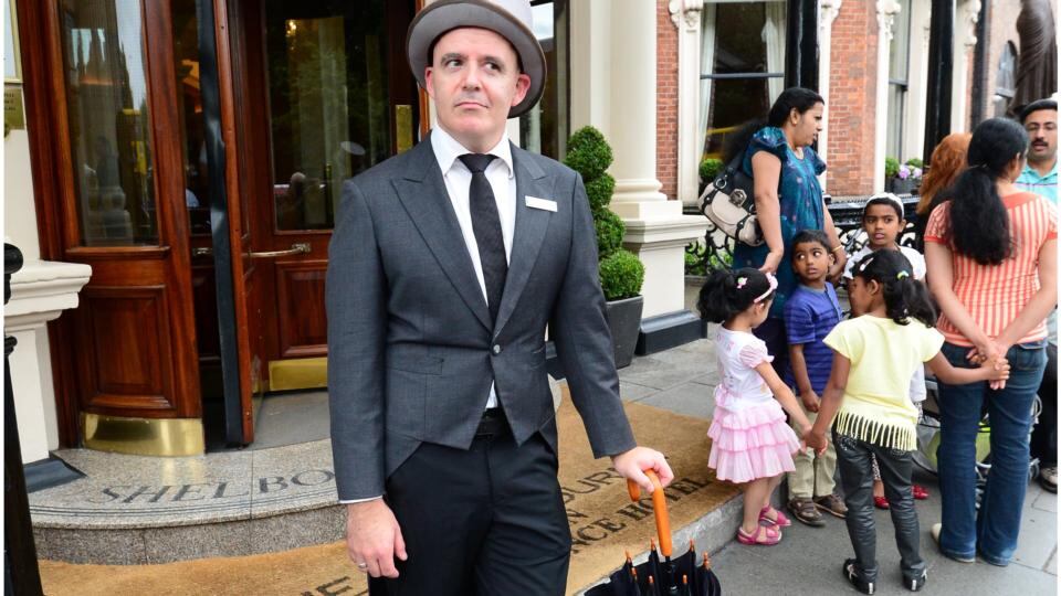 Dealing with bags and valet cars is straightforward and I grow in confidence until I develop an unfortunate verbal tick. There is a 15/5 rule here. If I am between 15 and five feet from a guest I’m supposed to greet them and if I’m five feet away I’m supposed to offer them assistance. Instead of saying “Good morning” I start saying “Howaya”.