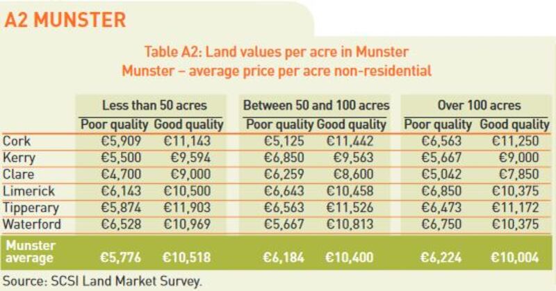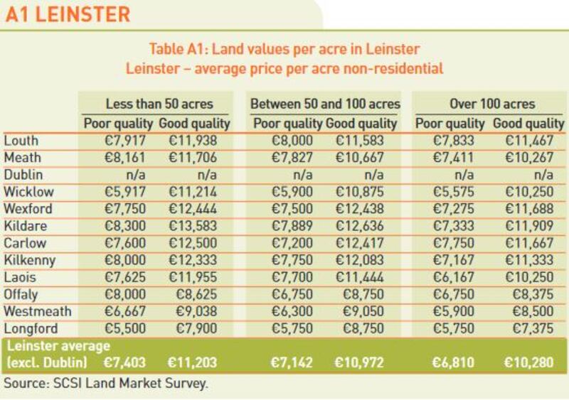 Nationally, the average price for non-residential land ranged from €5,900 per acre for poor quality land to €9,381 for good quality properties.