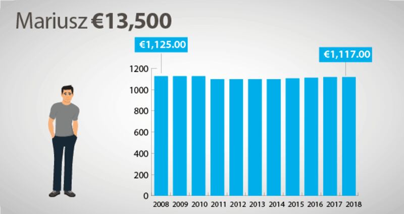 Mariusz notes that his net monthly income in 2018 more or less remains the same at € 1,117. If he was on the minimum wage he would have benefited in the increase in the payment from January 2018.