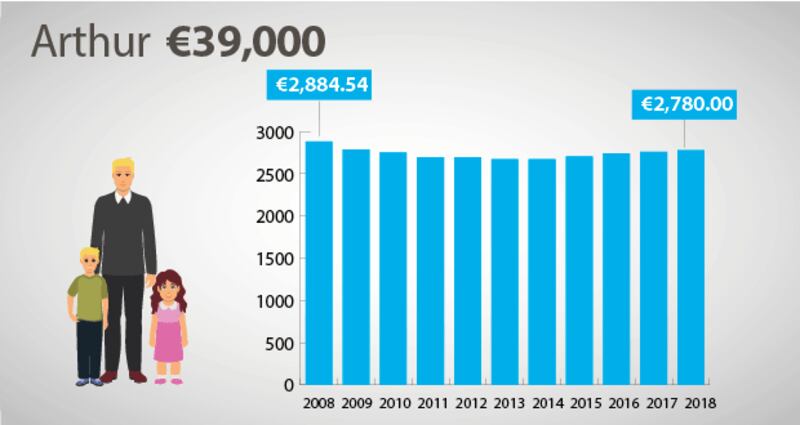Arthur is a single father in his late thirties. He lives in Galway with his daughter Emily, aged 4, and son Harry, 6. Arthur works as a recruitment agent and earns € 39,000 per year.