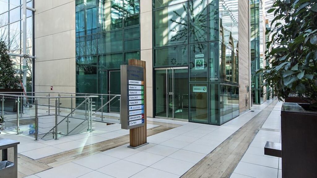 Allsop Space is seeking €650,000 for a partially occupied three-storey office building at The Mall in Beacon Court, Sandyford, Dublin 18.
