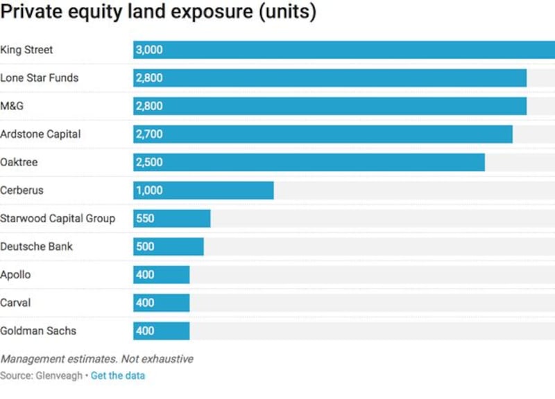 Many of the funds on the list, which includes US private equity groups King Street Capital, Lone Star Funds, Cerberus, Deutsche Bank and Goldman Sachs, are now in talks about selling land to Glenveagh and others, the company's chief executive, Justin Bickle, told reporters as it unveiled its maiden set of financial results on Tuesday.