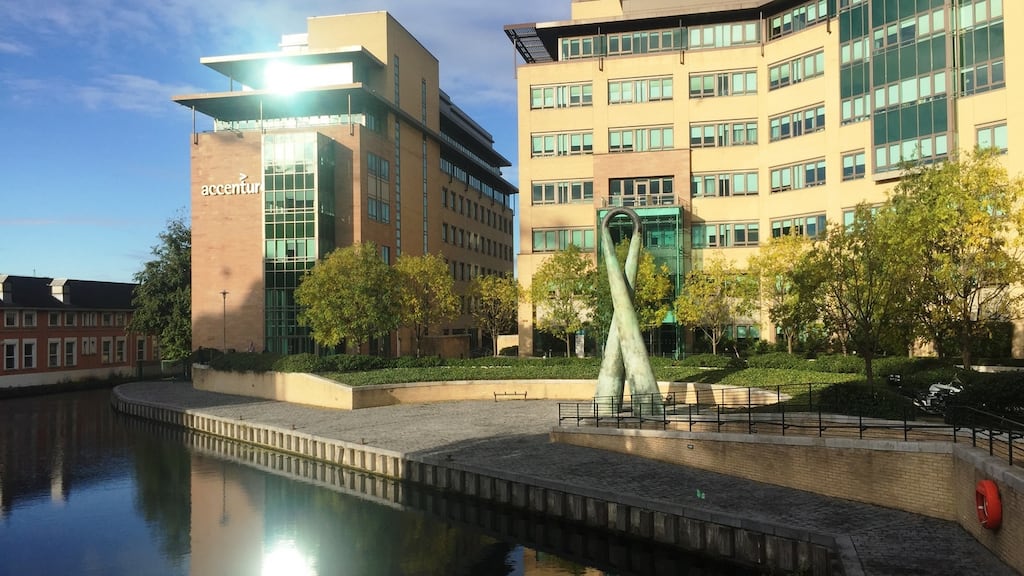As well as Accenture, the other tenants in 3 Grand Canal Plaza include Google, BNP Paribas and BT Communications. Grand Canal Plaza is located beside the Grand Canal Dock Dart station.