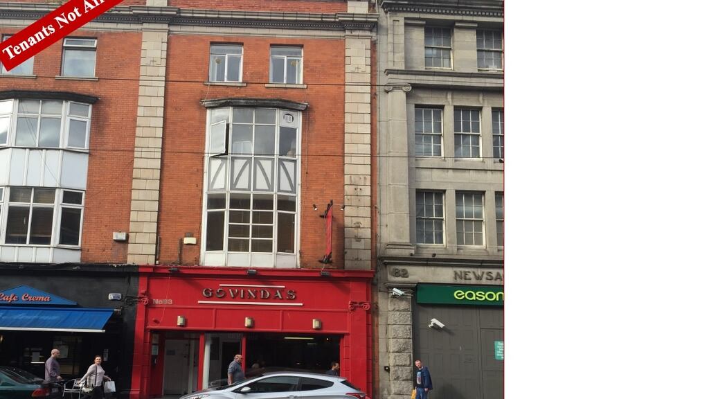 The four storey over basement building is significantly under-rented at €52,000 per annum. The ground floor is let to Govinda’s restaurant and it also has the use of the basement for a kitchen and store. The upper floors are used mainly as offices and consulting rooms. The 390sq m (4,200sq ft) building is let at an average rent of €12.38 per s q ft, leaving the way open for a re-evaluation of the property. It is located beside the Luas line and only yards from O’Connell Street.