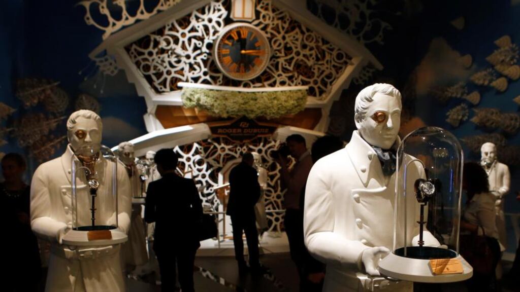 Still, these are good times for exhibitors at the annual Geneva trade get-together. Luxury watchmakers predict the market will grow this year, thanks to rising demand from North America and Europe, which will offset slowing sales to China. The total market for Swiss watches is worth about 20 billion Swiss francs (€16 billion), so that's nice. Photograph: Denis Balibouse/Reuters