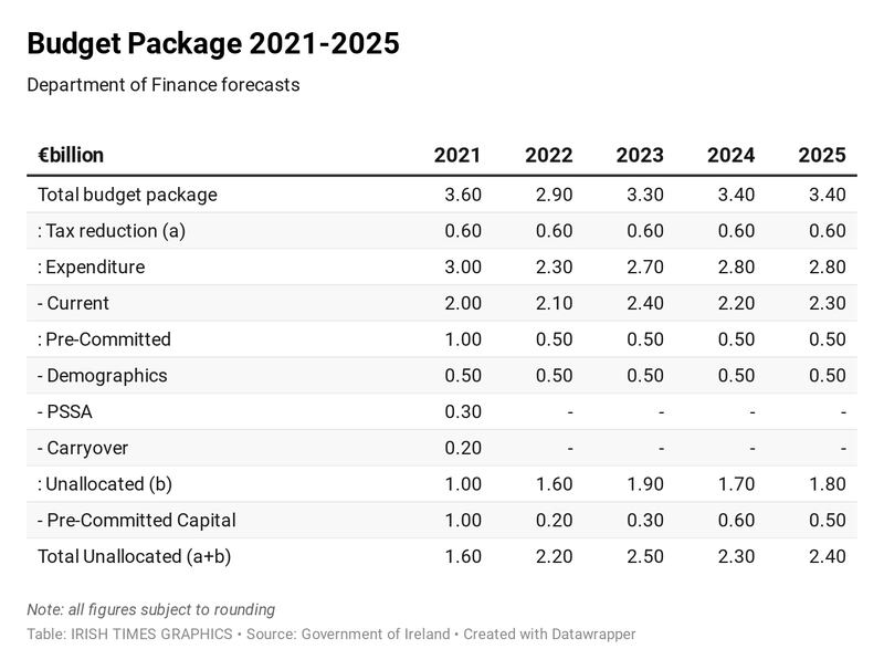The bottom line is that a large part of the €11 billion could be eaten up by pay and inflation pressures – the cost of continuing to provide what we have, rather than the “new stuff” beloved of election manifestos.
