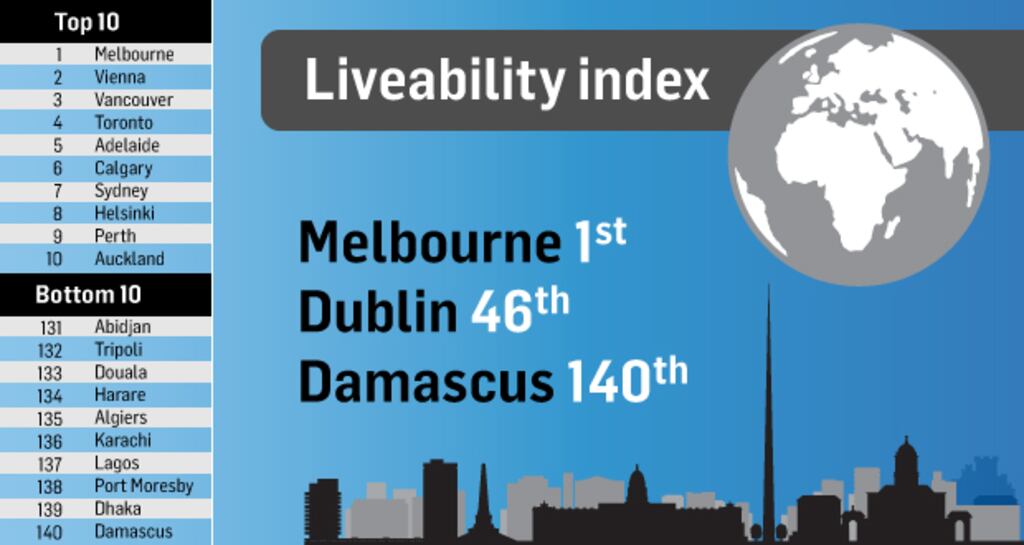 It may be one of the most sought after places to live judging by property prices but in terms of liveability Dublin comes way down the list.