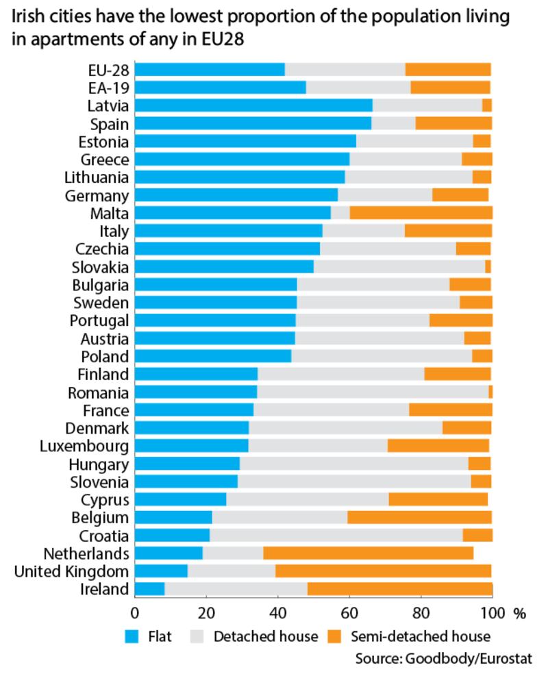 The industry points at regulation, taxes, planning and the costs of doing business here. Government sources say the industry needs to up its game in terms of design and delivery – and that Government initiatives will gradually bear fruit as “brownfield” former industrial sites closer to the city centre come on stream together with new public/private initiatives.