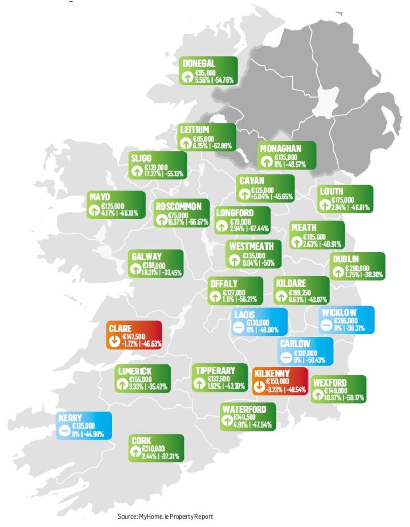 According to MyHome, the average asking price nationally was €239,000, up €12,000 on the previous quarter, while the figure for Dublin was €347,000, a rise of €19,000.