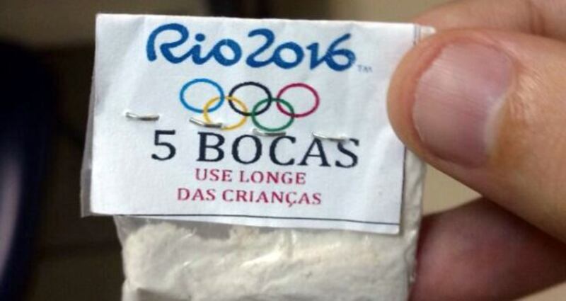 Olympic opportunism When critics allege the Olympics are a festival of drug-taking, branded cocaine packages may not be quite what they have in mind. Nevertheless, entrepreneurial spirit being what it is, these little sachets of coke have now been stamped with the Rio 2016 label, the Olympic rings and a warning that reads "keep away from children", and they are now doing the rounds of the Lapa neighbourhood in Rio, where they were duly confiscated by police. While cocaine is not a typical performance-enhancing drug, its use is not unheard of – hello, Maradona – and it is definitely on the World Anti-Doping Agency's banned list. The International Olympic Committee is presumably not amused – they're notoriously protective of their brand, after all. Photograph:Rio De Janeiro State Police/Reuters