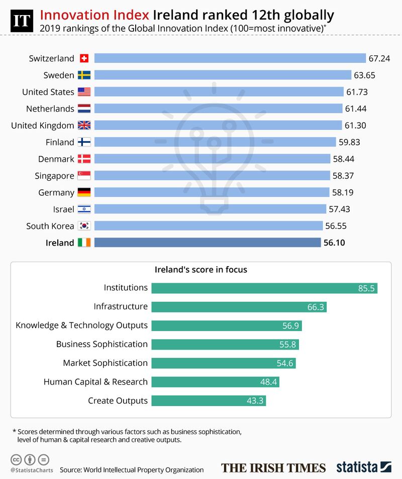 The Irish economy is the 12th most innovative in the world, according to a new report that ranks Switzerland in first place.