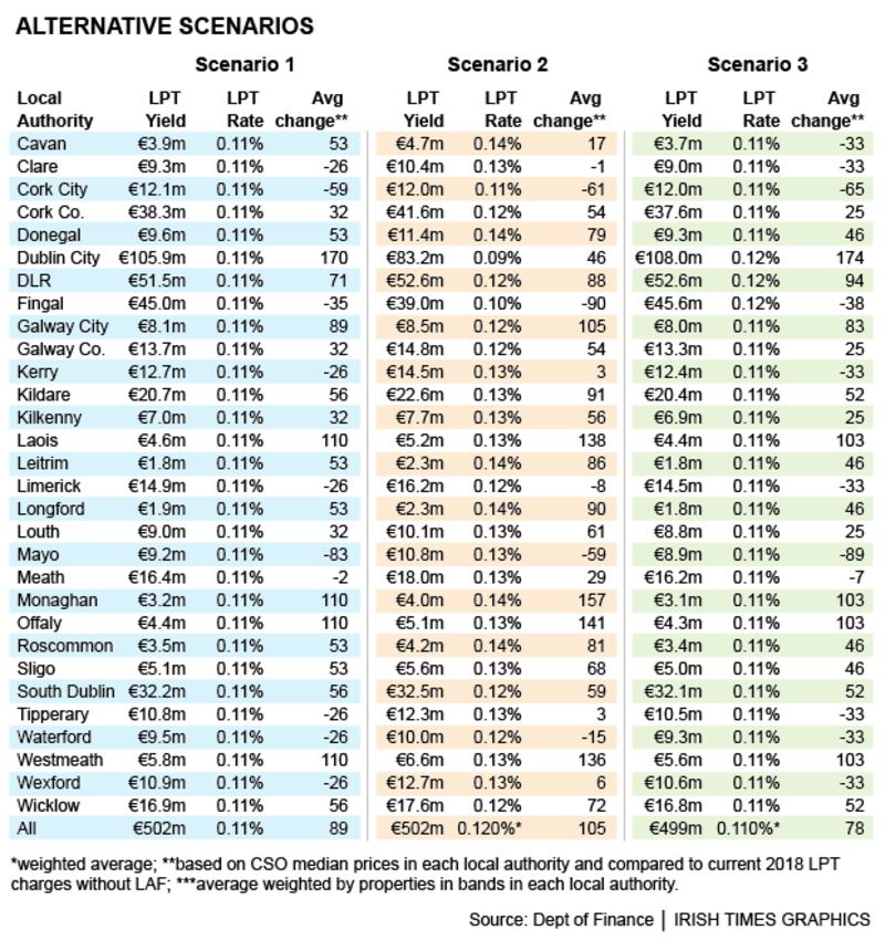 It is possible to reduce the changes from current property tax bills by introducing different, lower, rates in different local authorities, based on what is needed to maintain their own revenue from the tax. This was known in the document as scenario two. This would mean potentially 31 different rates for the tax.