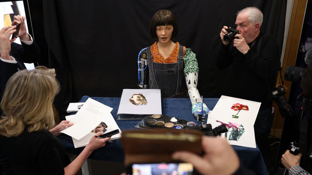 Every now and again it seems wise to check in on how the robots are doing and what they're up to this week. The answer, on this occasion, is painting creatively and taking (pre-submitted) questions from journalists. The uncannily human-like Ai-Da, named in honour of mathematician and computing pioneer Ada Lovelace, is a robot artist who will open her solo exhibition Leaping into the Metaverse – curated by her creator Aidan Meller – at this year's Venice Biennale.