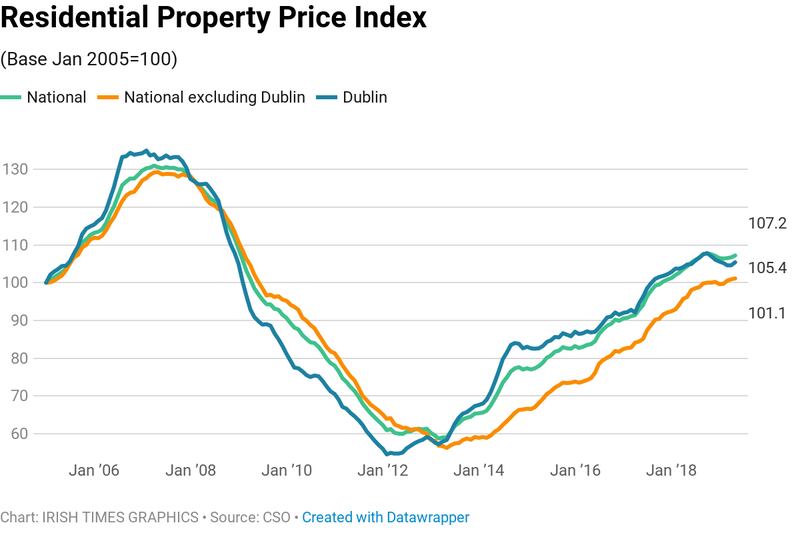 Property prices nationally have increased by 82.6 per cent from their trough in early 2013. Dublin residential property prices have risen 93.4 per cent from their February 2012 low, while residential property prices in the rest of the State are 79.9 per cent higher than May 2013.