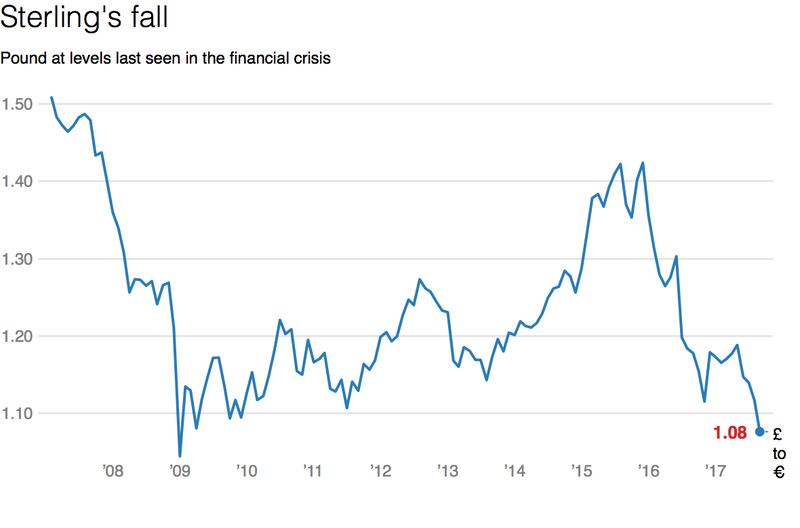 The latest fall puts the focus back on the sterling factor, after months of debate about whether companies trading with the UK would face tariffs and customs barriers after it leaves the European Union. This remains a live question – and one unlikely to be solved until later in the Brexit talks, when the future share of the UK-EU trading relationship becomes clear.