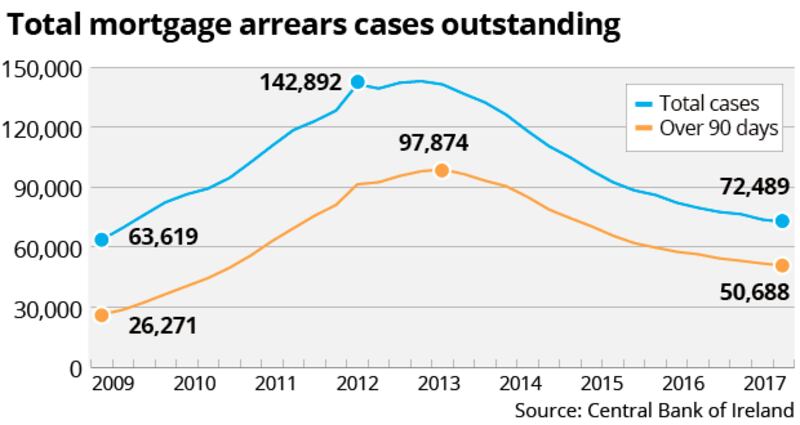 There are a few different ways to look at how rising debts have hit households in Ireland, but perhaps the clearest is mortgage arrears. After the housing market crashed, these peaked at 143,000 cases in mid 2013, 18.5 per cent – or not far off one in five – of all mortgages. This total has since fallen to just under 72,500 in September 2016, around 9.9 per cent of the total. This is still a high figure. Overall household debt data tells a similar story –Irish household debt is falling, but remains fourth among 16 European countries, according to recent Central Bank figures. Meanwhile, the share of mortgages in negative equity has fallen from over one third in 2011 to around 10 per cent.