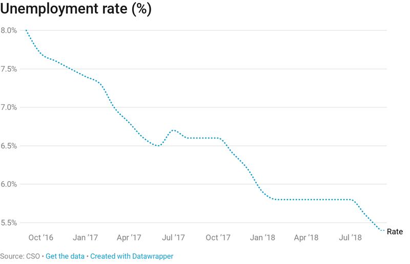The latest monthly figures from the Central Statistics Office (CSO) show the number of workers classified as unemployed fell by 4,800 to 129,400 on a seasonally adjusted basis in September. This represented an annual decrease of 26,800 or 1.2 per cent.