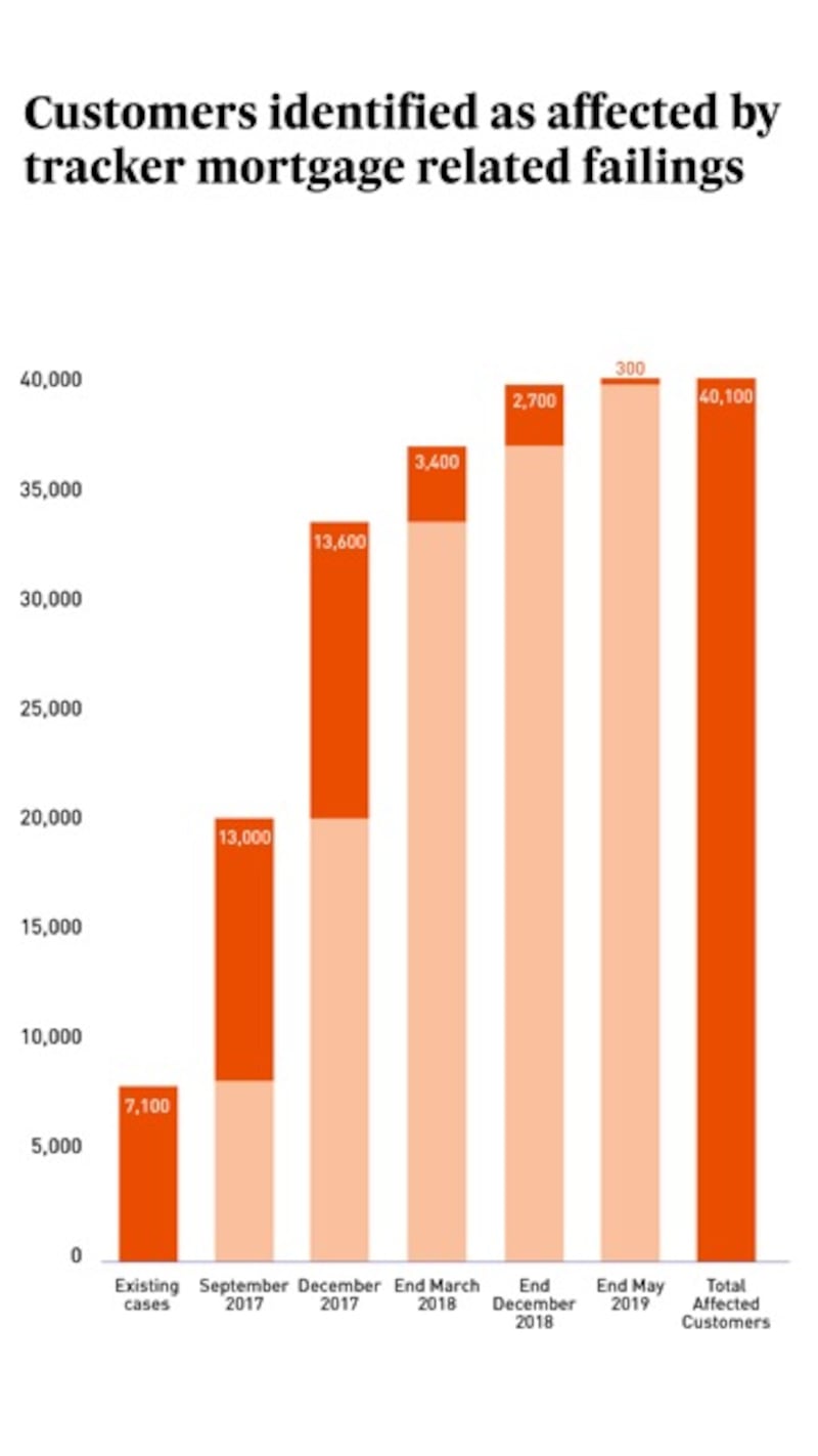 The total of 40,100 tracker cases includes 5,100 Bank of Ireland and about 2,000 Permanent TSB accounts that were dealt with before the Central Bank ordered the examination.