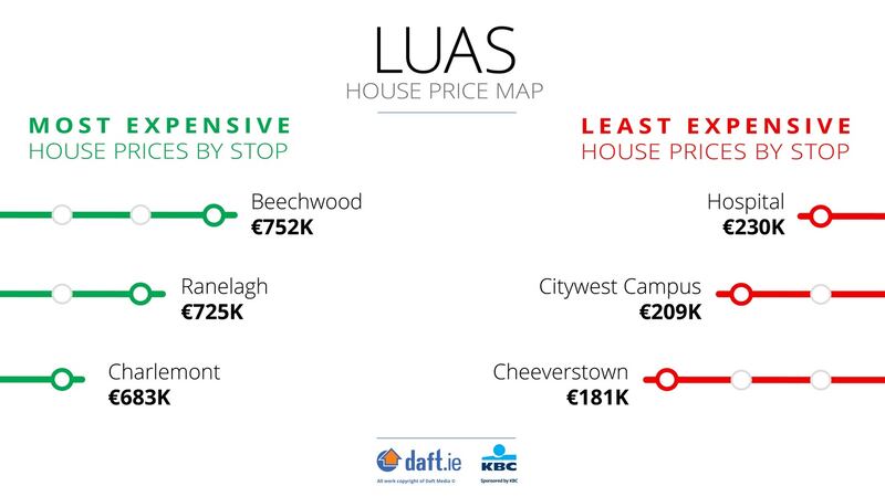 Cheapest on the Red Line are Cheeverstown (€181,000), Citywest (€209,000) and Hospital (€230,000).