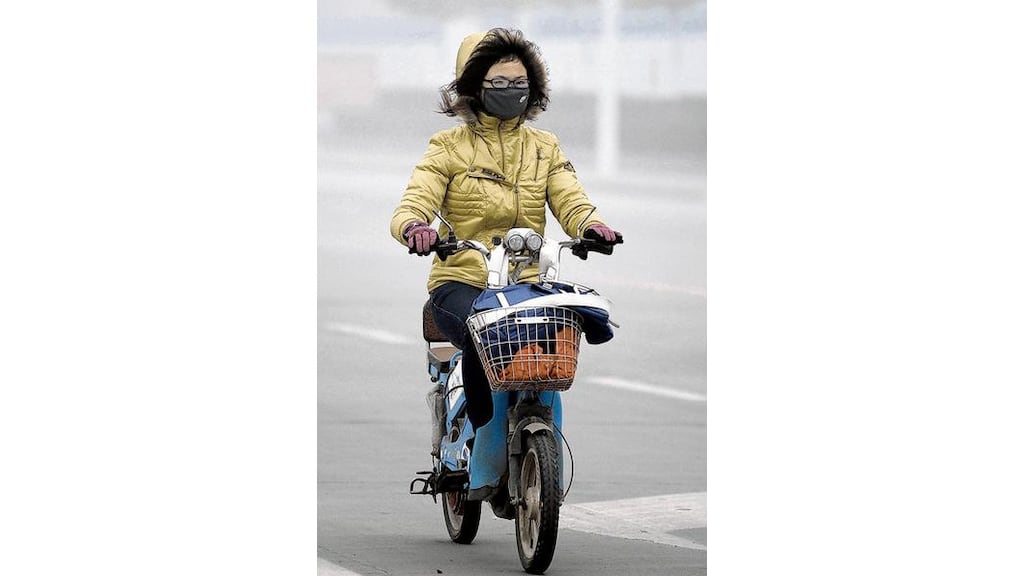 The electric bike is powered by batteries which don't contribute to the haze of pollution casting a pall over most Chinese cities