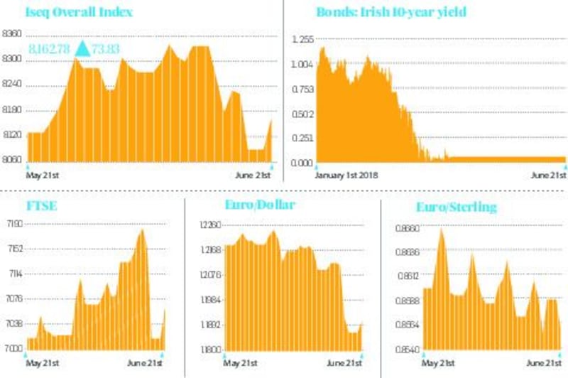 Paper and packaging giant Smurfit Kappa Group rose 1.4 per cent to €44.55. The business does well when consumer sentiment rises as its packaging is used with a lot of retail goods sold online.