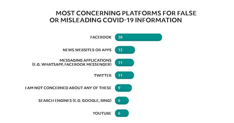 Facebook was the main platform that caused most concern regarding Covid-related false or misleading information (38 per cent).