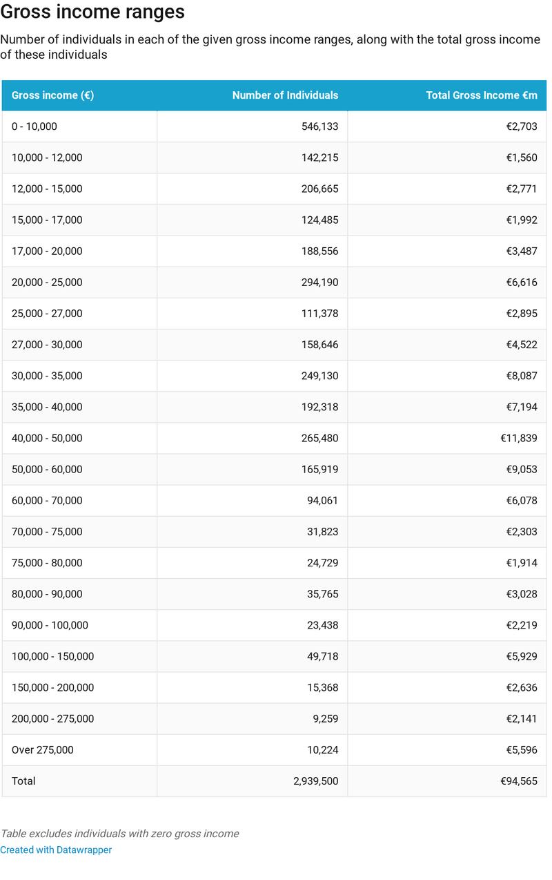 The Revenue Commissioner published new income distribution statistics this week, following representations from Sinn Féin, that showed for the first time gross income broken down by individuals, as opposed to taxpaying units. It shows around 144,000 people earning over €80,000, just under 5 per cent of the total.