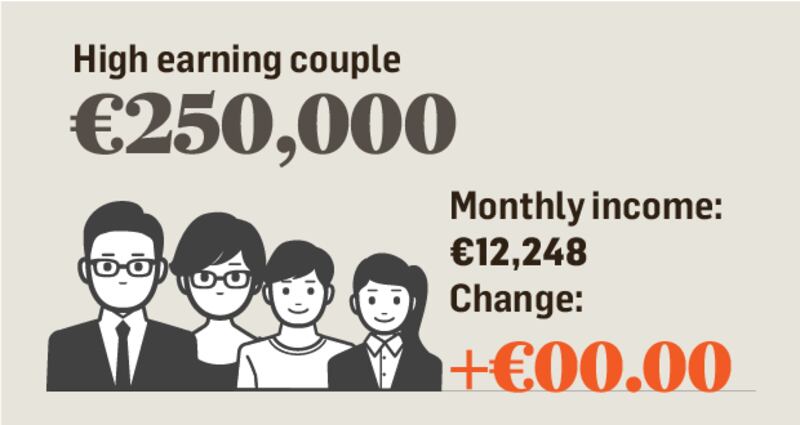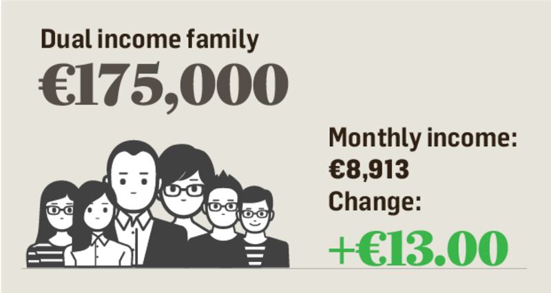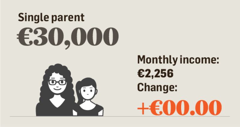 Nonetheless, we do have two “winners” among our budget families this year. First of all, our dual-income family, Mark and Linda, who stand to benefit from the increase in the earned income credit for the self-employed, up from €1,350 to €1,500 come January. It means that they will pay €3 less tax a week next year. Not enough to mitigate their fears about what Brexit might mean for their business, but better than nothing perhaps.