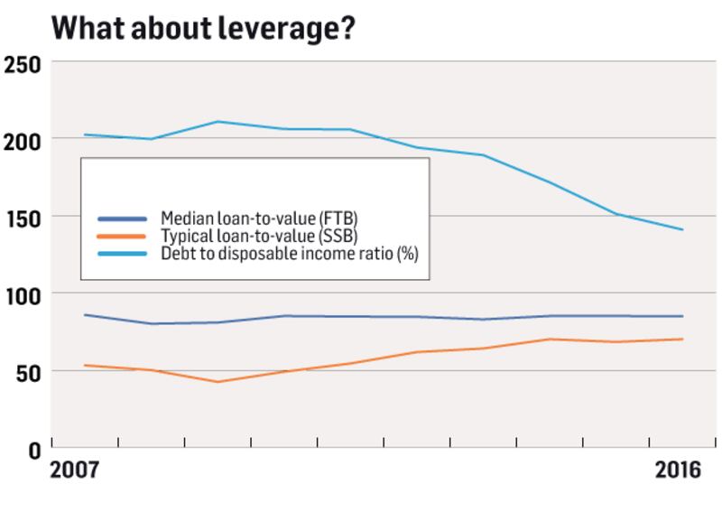 Figures for 2016 show that the median LTV on a a first-time buyer loan was 85 per cent, or 70 per cent for someone trading up. This is the case even though exceptions are allowable, which means that a certain proportion are borrowing more than 90 per cent.