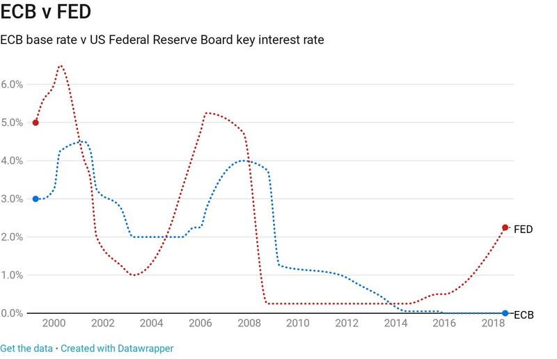 The US central bank, the Federal Reserve Board, first nudged up interest rates from their crisis level of around zero in December 2015, the first rise in nine years, but market turmoil then stayed its hand.