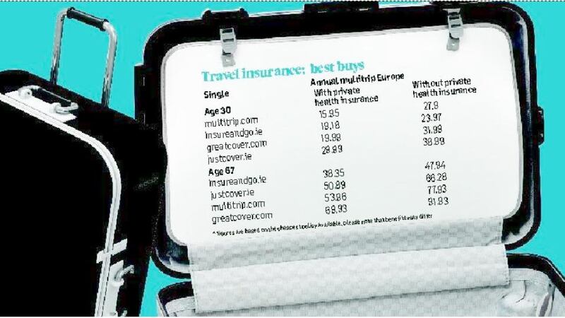 If you have a credit card, you may find that this will cover the cost of your insurance, although this is a benefit that seems to be on the way out. For example, holders of Bank of Ireland’s Platinum Advantage Mastercard will automatically get fully comprehensive multitrip travel insurance when they pay for at least 50 per cent of their total fare with this card. So be sure.