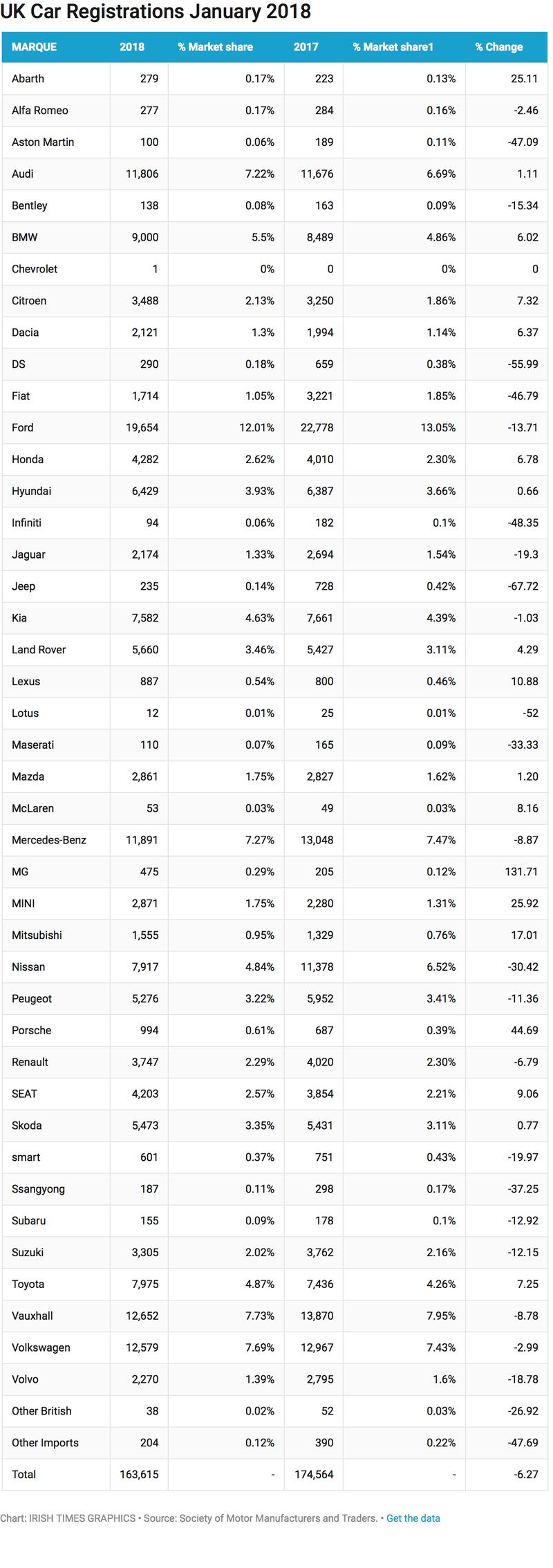 The UK market is closely watched by the Irish motor trade given the increasing number of used imports arriving into the Republic. Figures published last week showed that nearly 500,000 used or privately imported vehicles are currently on Irish roads, representing over 20 per cent of the entire fleet in the Republic. Figures from vehicle history checking service cartell.ie show 487,492 imports were registered in the State on January 1st. During the same period the size of the so-called native fleet - vehicles first registered in the Republic - stood at 1,784,716.