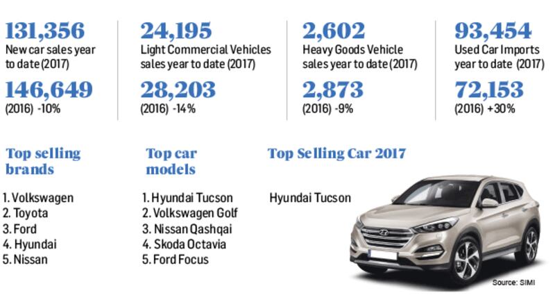 New car sales were down 10.43 per cent in 2017, to 131,356, with weaker sterling driving a significant rise in used imports.