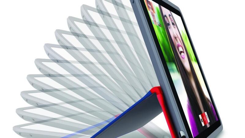 The front cover bends to provide a stand that can be adjusted in a 50 degree angle range, while the rear cover provides a thick bumper between your iPad and the concrete. Hidden magnets stabilise the stand so you can pick up and move your Apple device without altering the viewing angle.