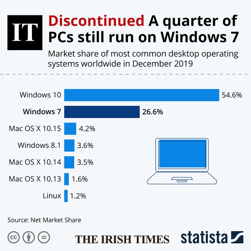There are thousands of Irish businesses out there still using Windows 7 that have yet to make the leap to a new operating system for various reasons. For some, it’s because migrating systems can take up to 12 months to complete. For others, it’s a software compatibility issue, and the requirement to rigorously test any software that will be used on the updated operating system.