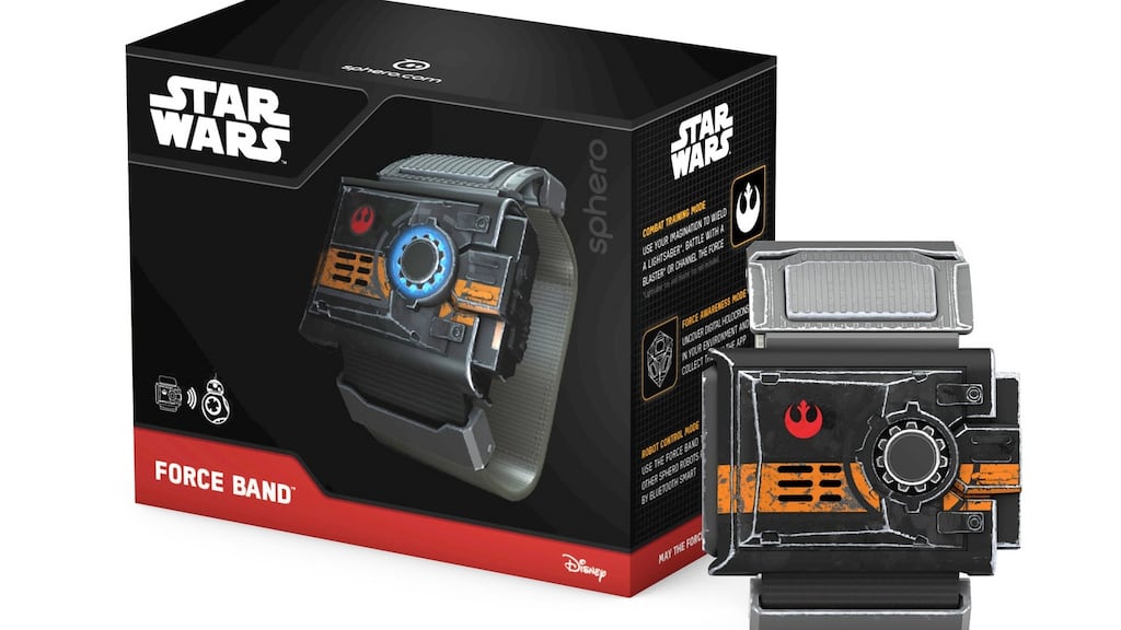 But Sphero had to go one better. So the company came up with the Force Band, a way to control BB8 by gesture and really tap into that Jedi mindset. It works like this: the band connects to the Sphero BB8 over bluetooth, and you can then push BB8 away, pull him towards you, rotate him or stop him in his tracks. There are simple gestures that control each of the four functions, but it’s an uncomplicated set of controls.