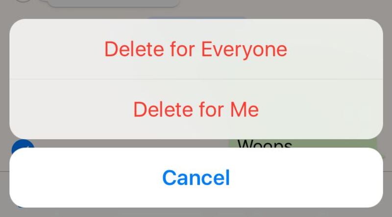 The new ‘Delete for Everyone’ option means that the message will be deleted from everyone’s chat.