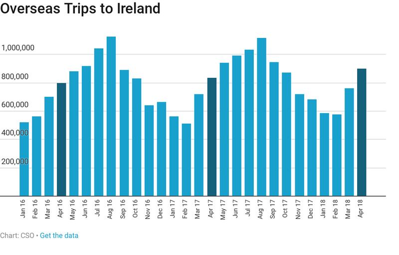 There were 2.8 million trips to Ireland between January and April of this year, an increase of around 191,000 on the first four months of 2017.