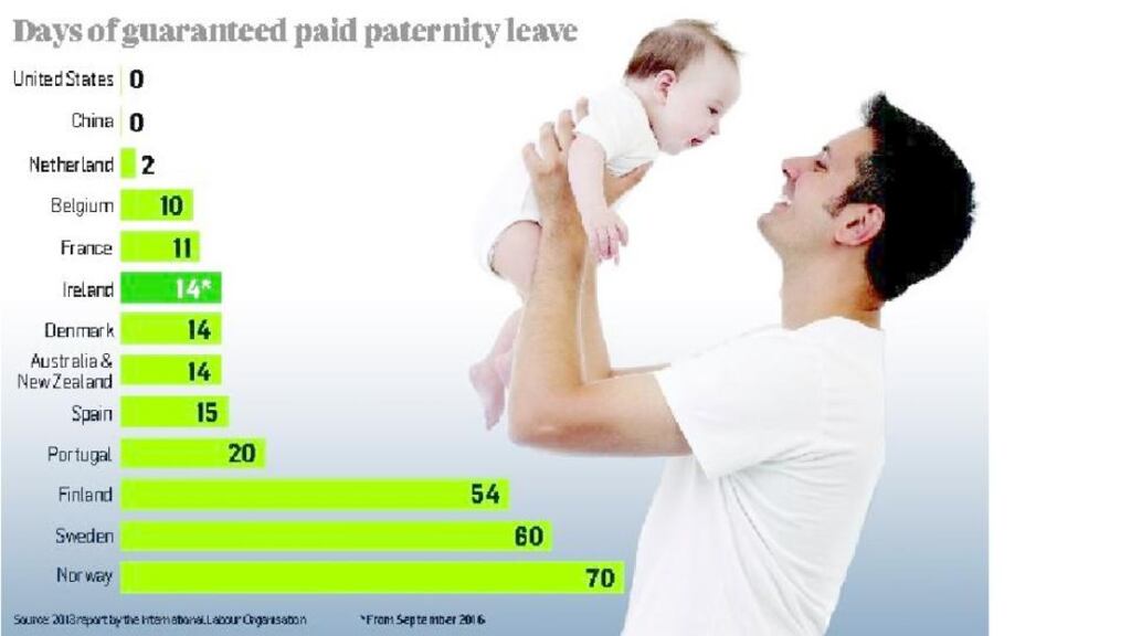 She says the two weeks’ paid paternity leave is “more positively received” by employers than the proposal to move towards a system of one year shared parental leave similar to that in the UK.