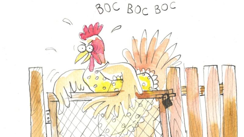 Meanwhile back in Donegal, Nicky Licky’s Mum was still locked into the chicken pen and she asked everyone who passed to let her out but they wouldn’t do it. So she began to bite through the chicken wire but she forgot it was electrified wire. “Flippin Fionnuala!” she said, as she remembered just in time. “Help!” she baulked . . .