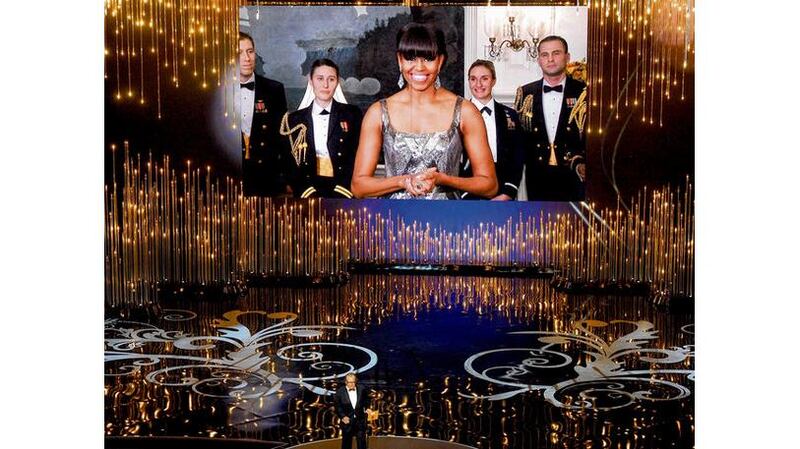 They say politics has turned into show-business, but apparently it’s a two-way street. One minute we’re watching Jack Nicholson getting excited about ringlets, the next, he hands over to Michelle Obama to open the envelope for the Best Film award. Huh? Did I miss her in Silver Linings Playbook?