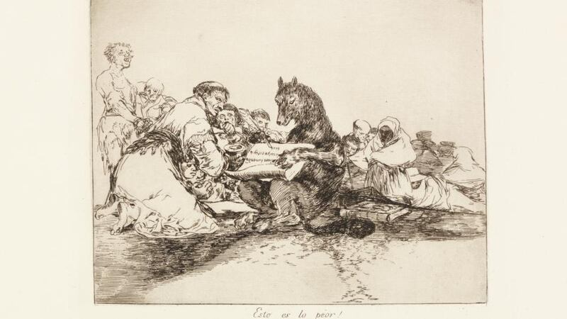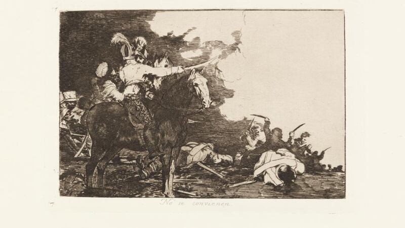 The first group of completed etchings bore the title "Sad forebodings of what is going to happen". Going to happen, that is, following an ill-fated political deal between Spain's ruling Bourbon regime and Napoleon Bonaparte, a deal that quickly unravelled and led to a French invasion and occupation. The long, bitter Peninsular War that ensued pitted Spanish irregulars against a formidable French military machine.